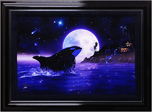 クリスチャン・ラッセン「レインボードルフィン」A354/技法・アイリスと手水彩/サイズ・90.5x60.5(cm) -