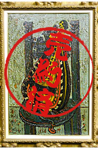 マーティロ・マヌキャン「金色の織物」A358/技法・ミックストメディア/サイズ・76x61(cm) -